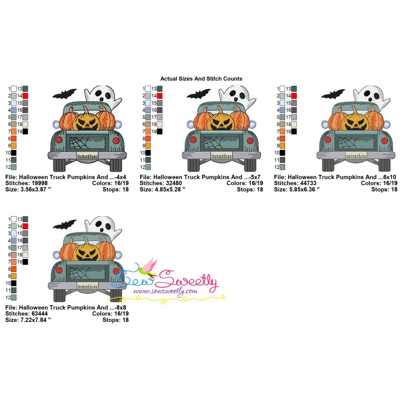 Halloween Truck Pumpkins And Ghost Exclusive Machine Embroidery Design Pattern For Halloween.