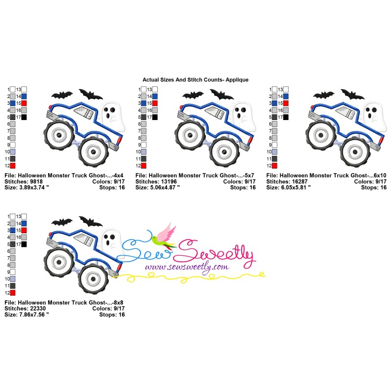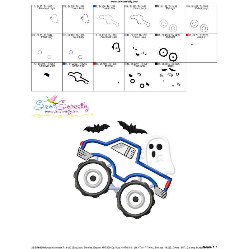 Halloween Monster Truck Ghos Exclusive Applique Embroidery Design Pattern For Halloween.