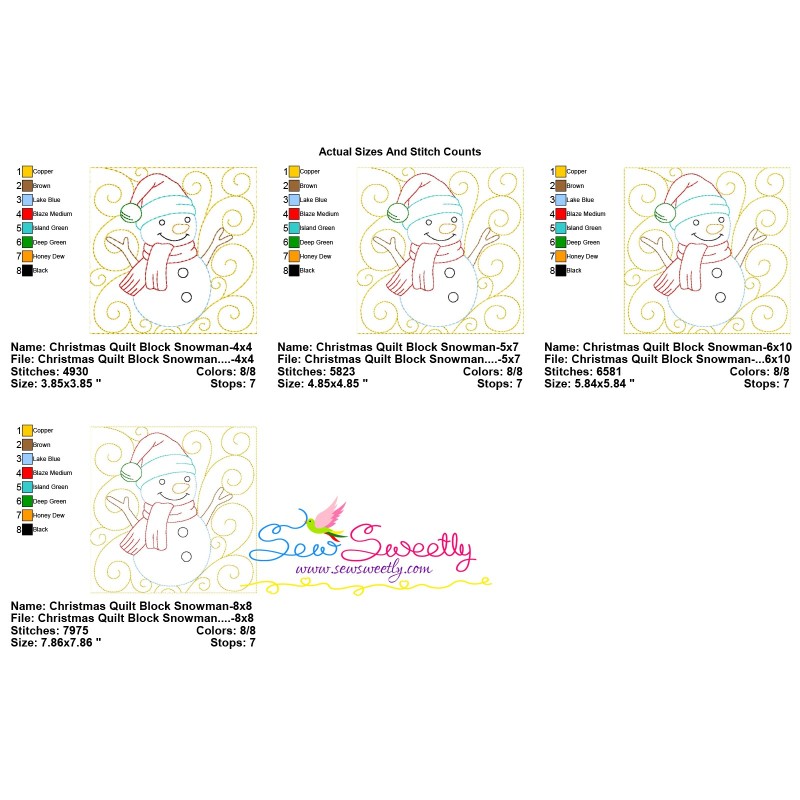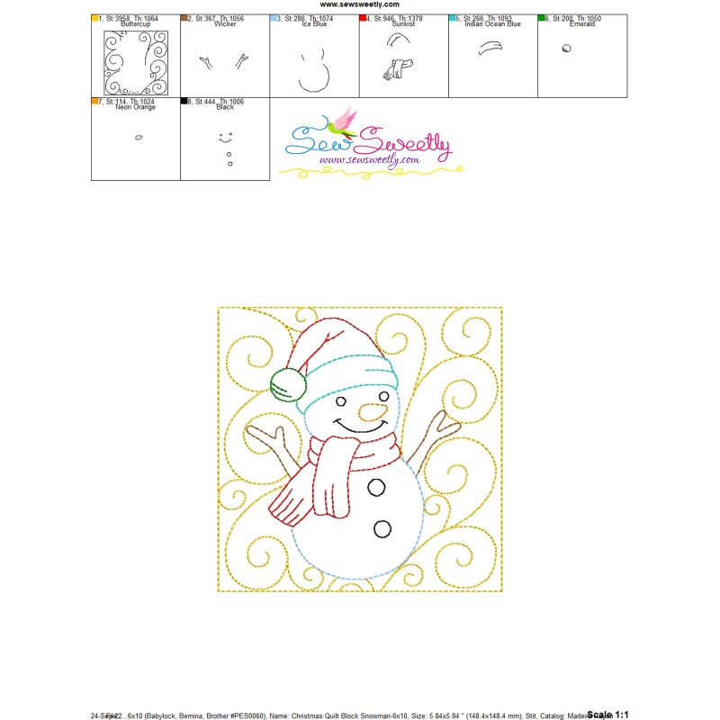 Christmas Quilt Block Snowman Exclusive Machine Embroidery Design Pattern For Christmas Quilt Blocks.