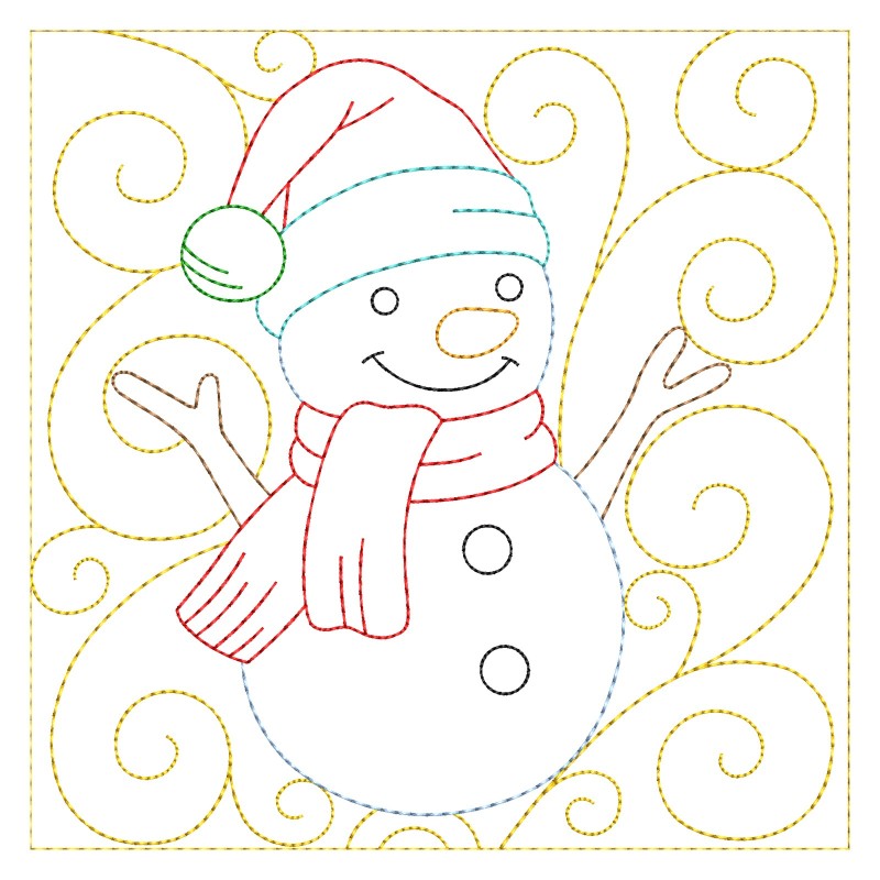 Christmas Quilt Block Snowman Embroidery Design Pattern