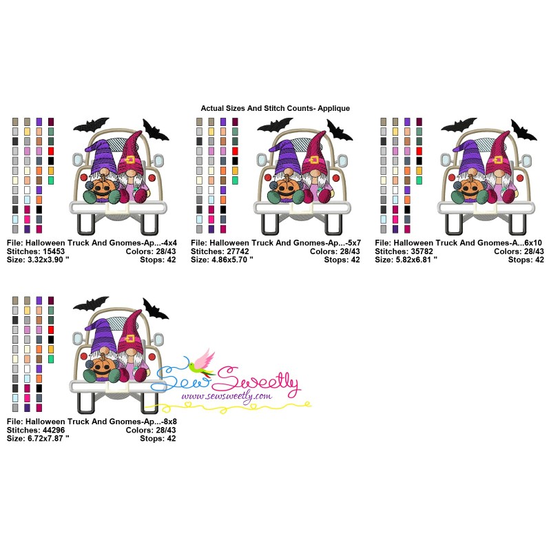 Halloween Truck And Gnomes Exclusive Applique Embroidery Design Pattern For Halloween.