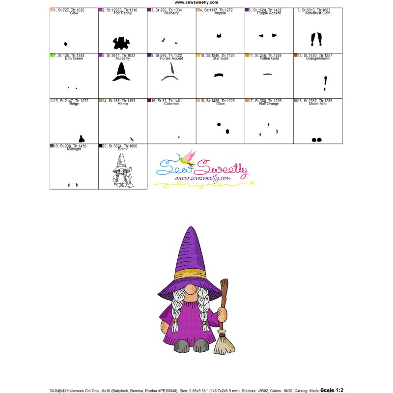 Halloween Girl Gnome Broom Exclusive Machine Embroidery Design Pattern For Halloween.