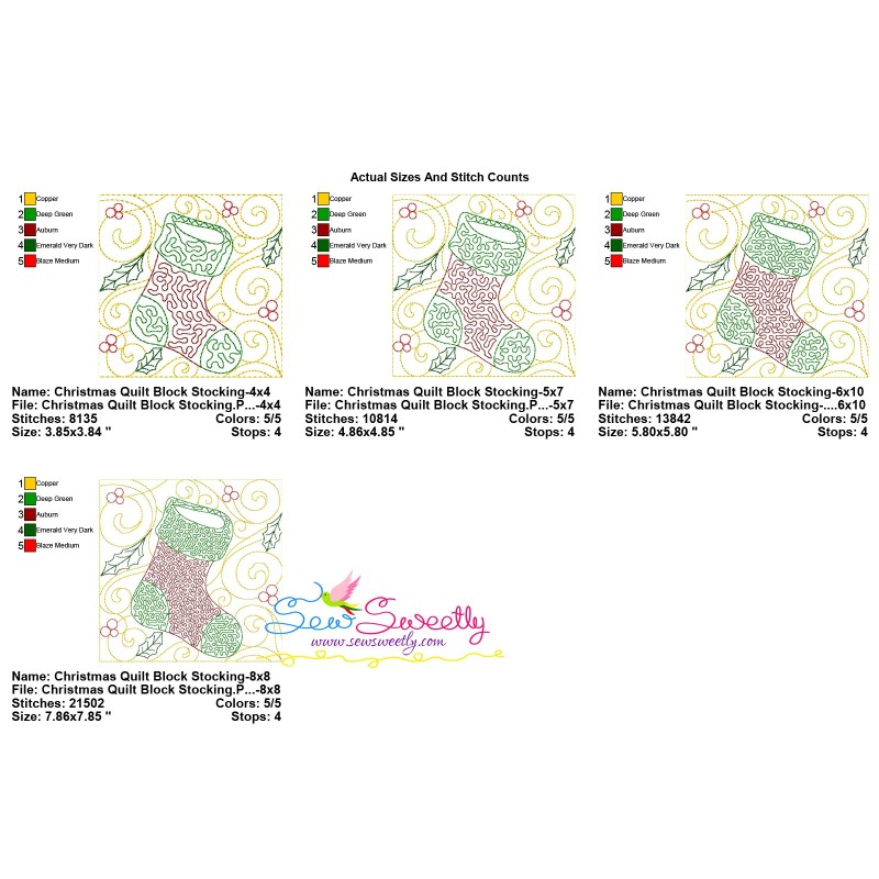 Christmas Quilt Block Stocking Exclusive Machine Embroidery Design Pattern For Christmas Quilt Blocks.
