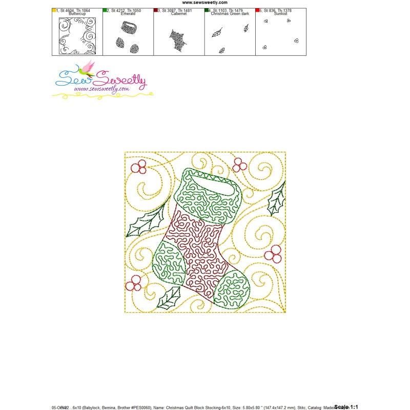 Christmas Quilt Block Stocking Embroidery Design Pattern