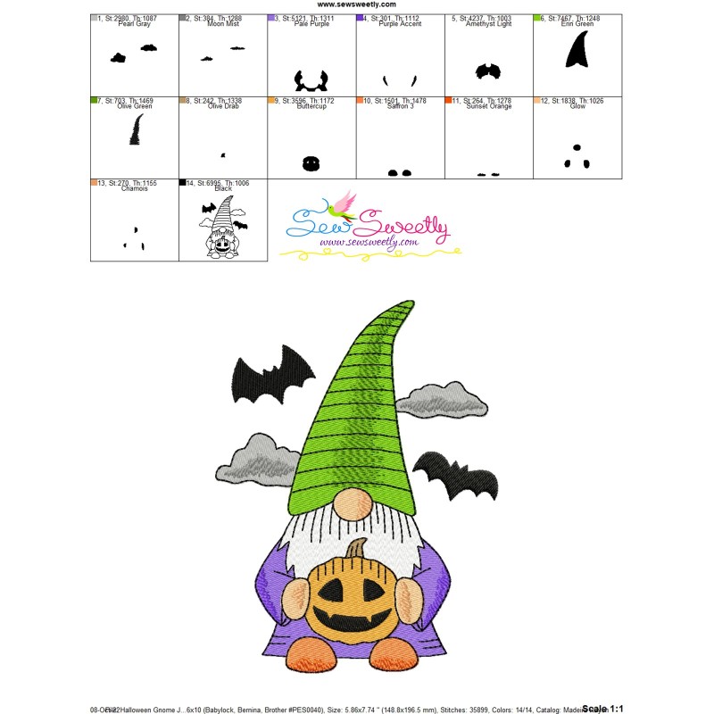 Halloween Gnome Jack-O-Lantern Exclusive Machine Embroidery Design Pattern For Halloween.