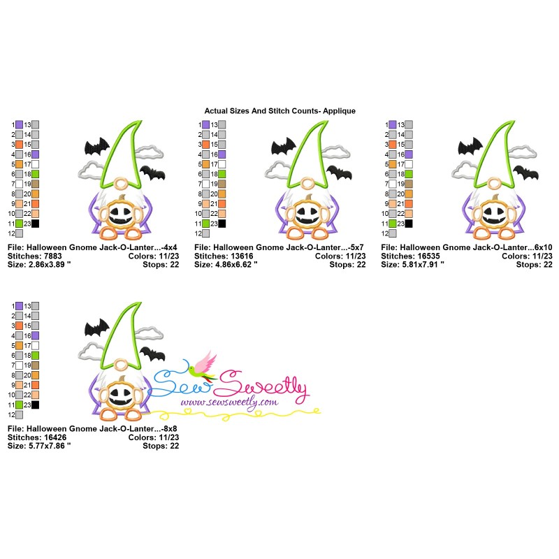 Halloween Gnome Jack-O-Lantern Applique Design Pattern-1