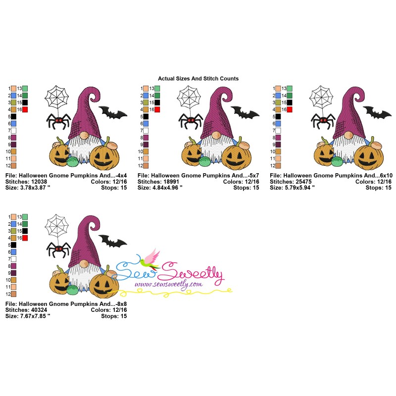 Halloween Gnome Pumpkins And Spider Exclusive Machine Embroidery Design Pattern For Halloween.