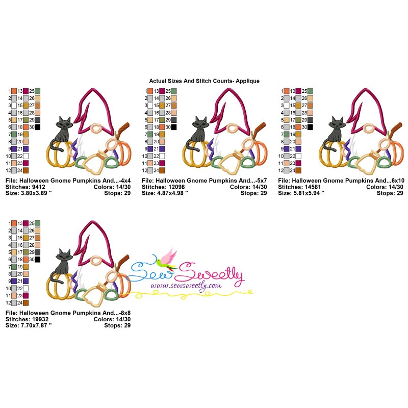 Halloween Gnome Pumpkins And Broom Exclusive Applique Embroidery Design Pattern For Halloween.