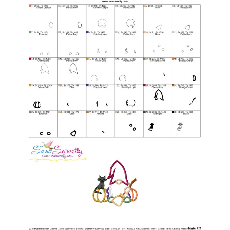 Halloween Gnome Pumpkins And Broom Applique Design Pattern