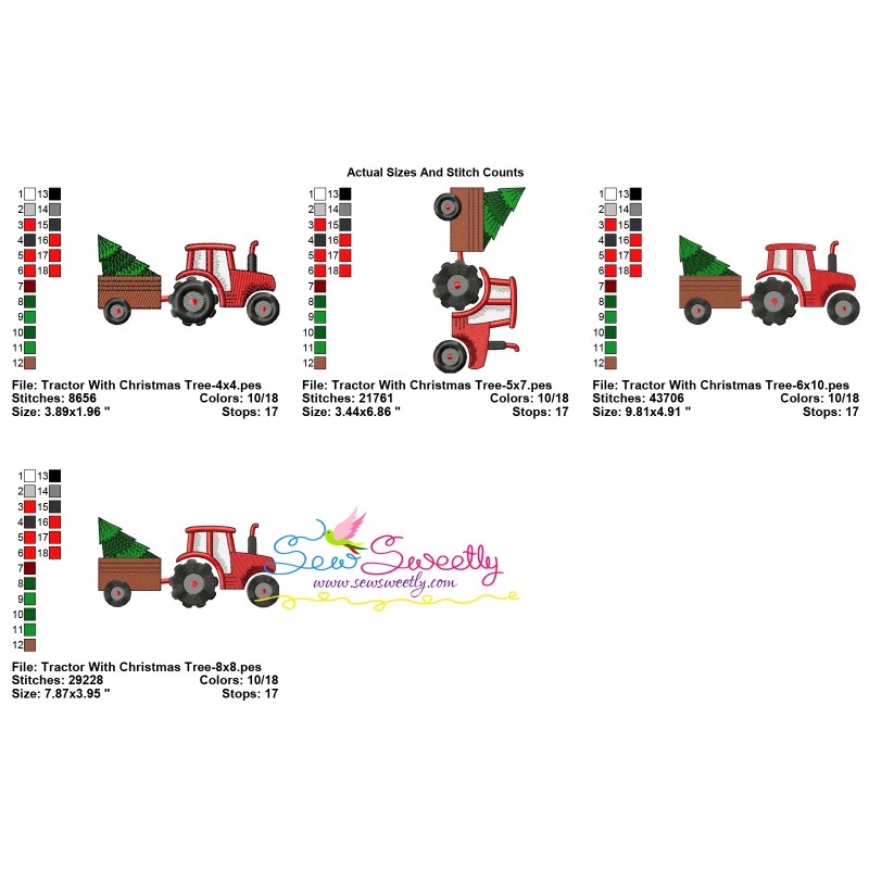 Tractor With Christmas Tree Embroidery Design Pattern