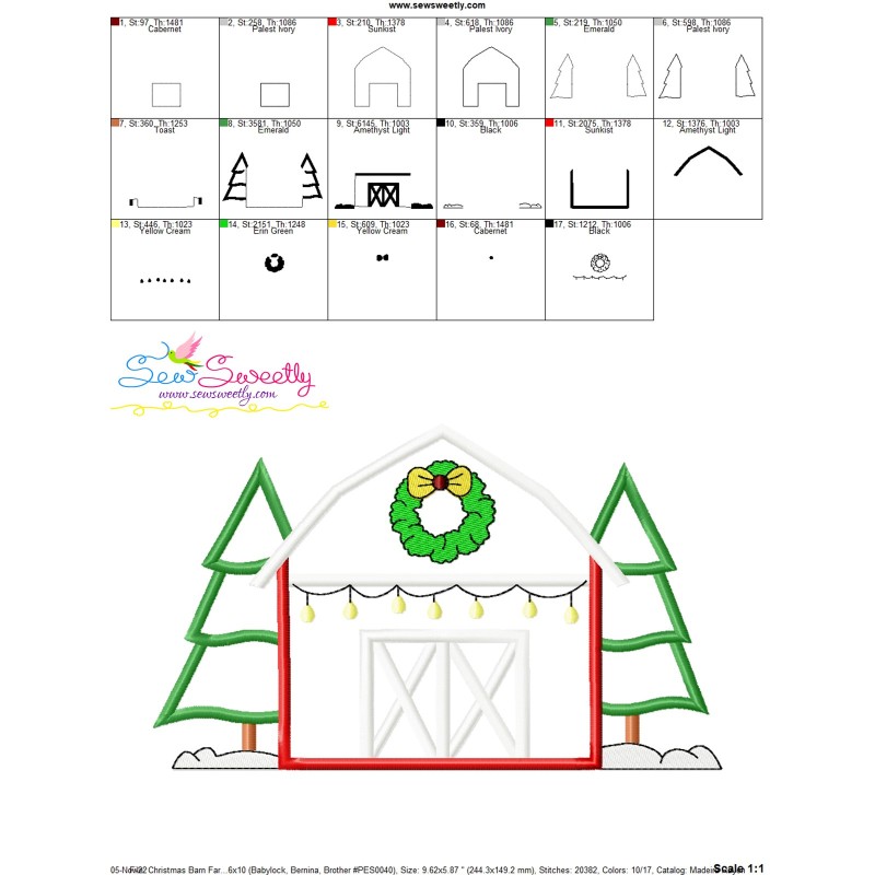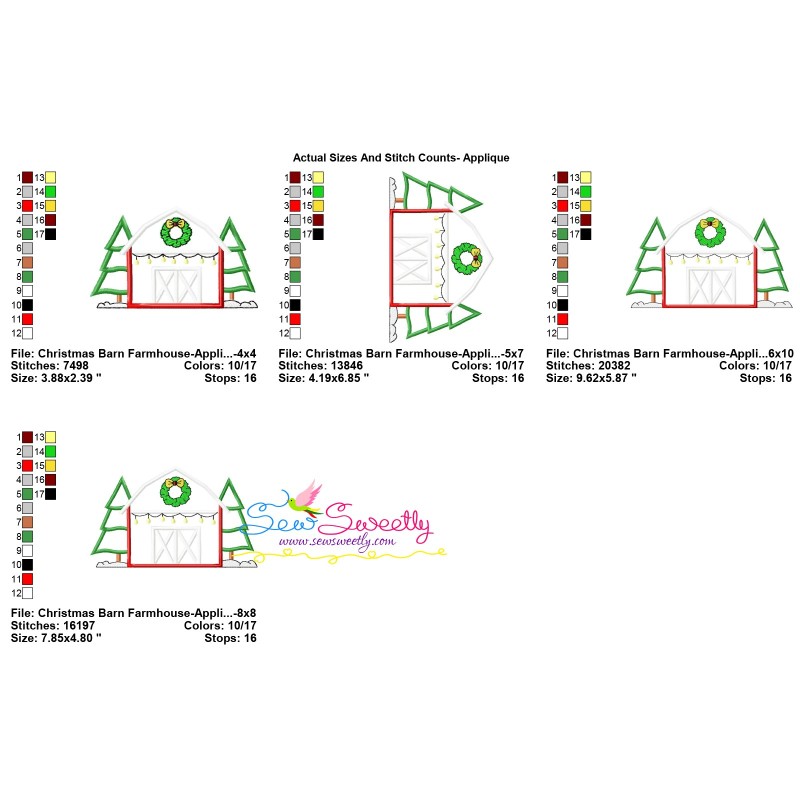 Christmas Barn Farmhouse Exclusive Applique Embroidery Design Pattern For Christmas.