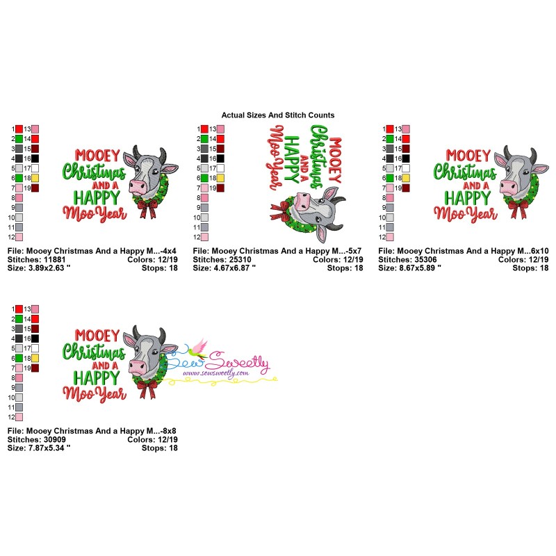 Mooey Christmas And a Happy Moo Year Cow Exclusive Machine Embroidery Design Pattern For Christmas.