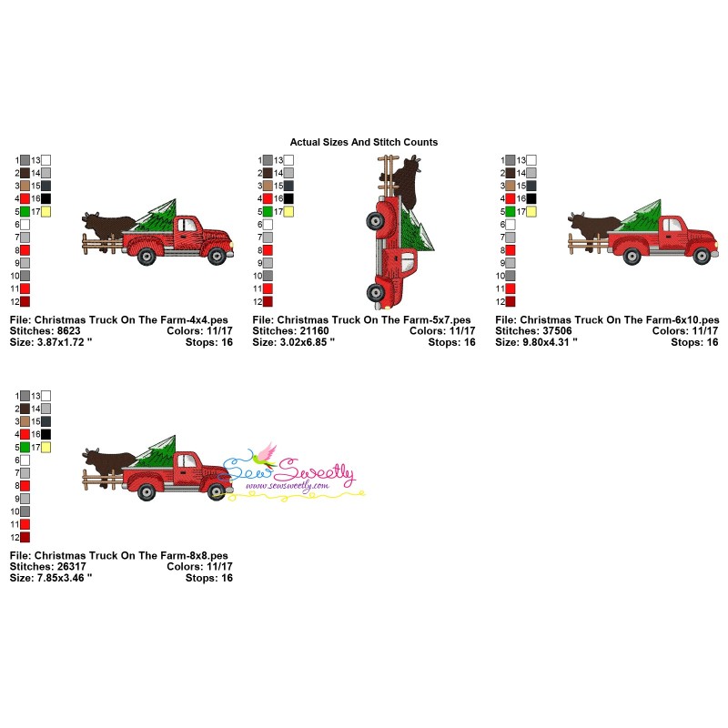 Christmas Red Truck On The Farm Exclusive Machine Embroidery Design Pattern For Christmas.