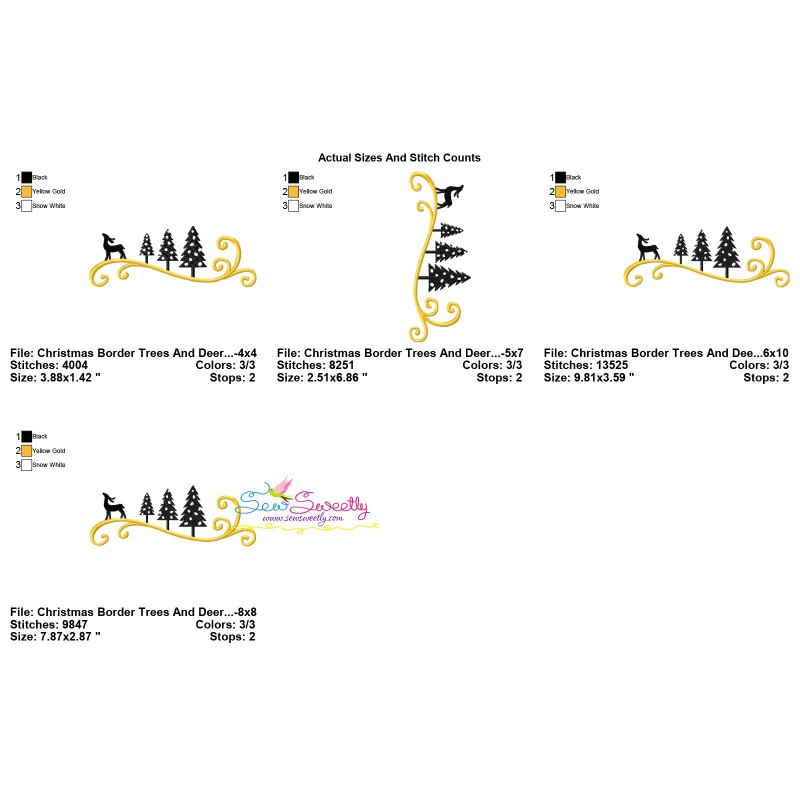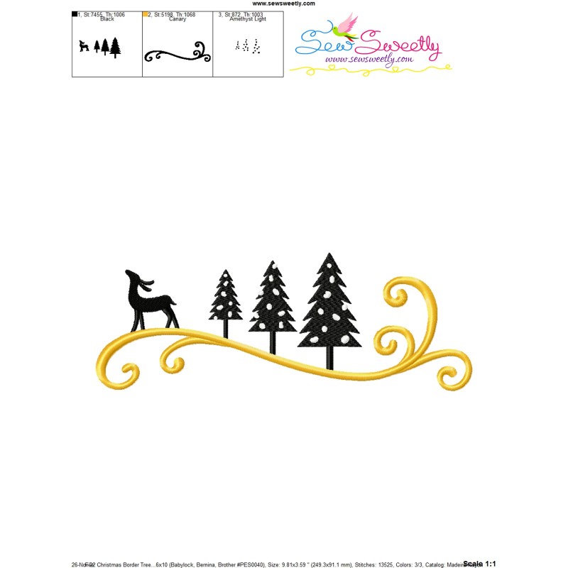 Christmas Border Trees And Deer Exclusive Machine Embroidery Design Pattern For Christmas.