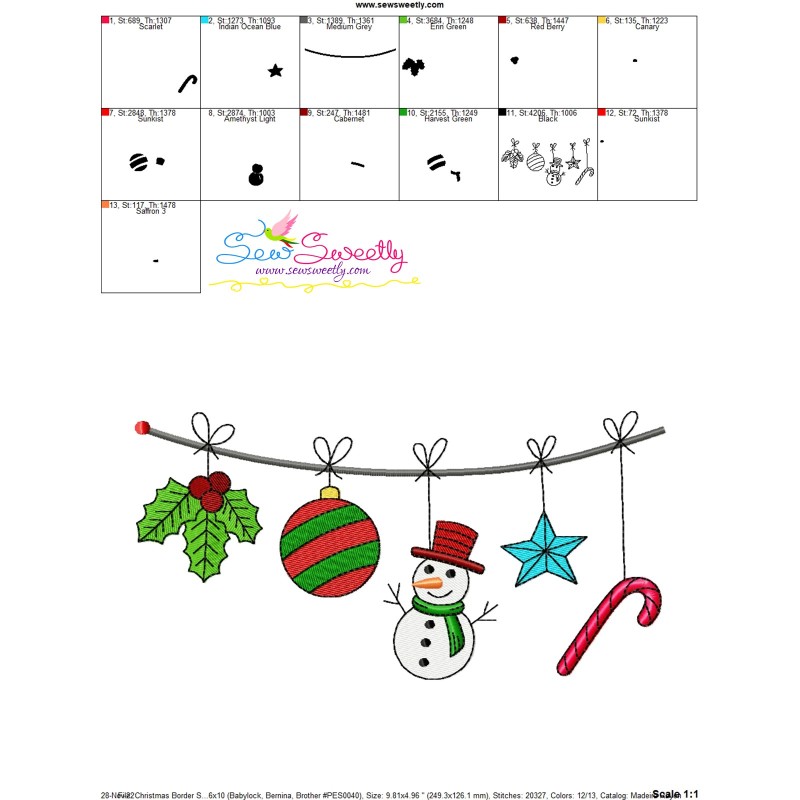 Christmas Border Snowman Ornaments Embroidery Design Pattern
