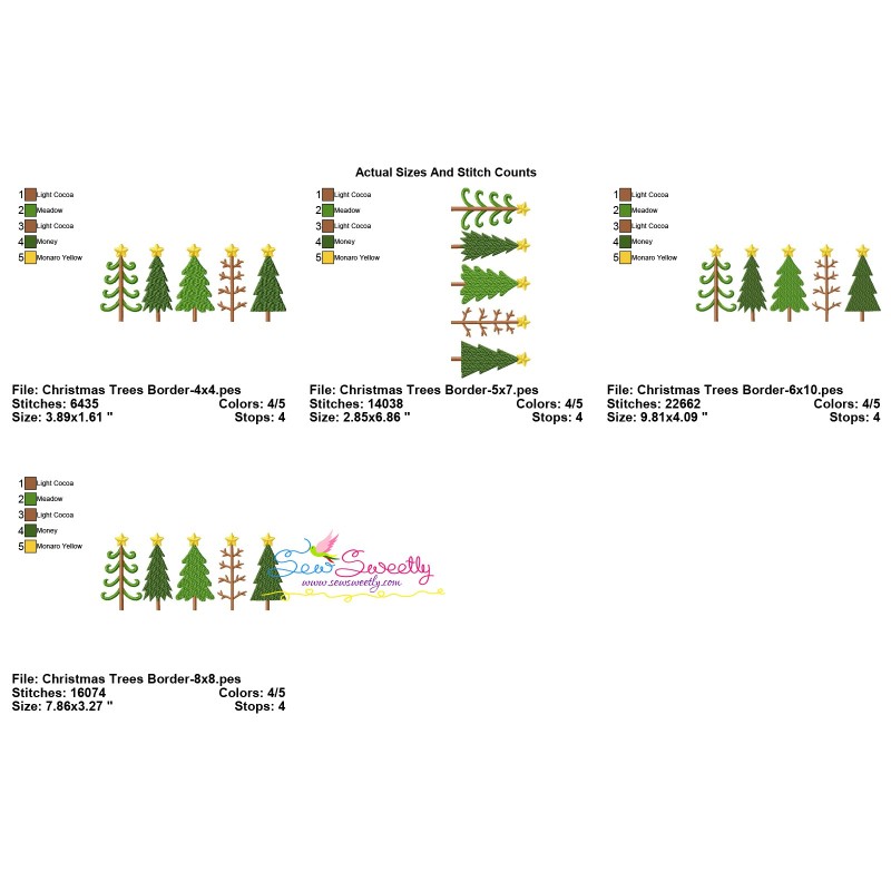 Christmas Trees Border Exclusive Machine Embroidery Design Pattern For Christmas.