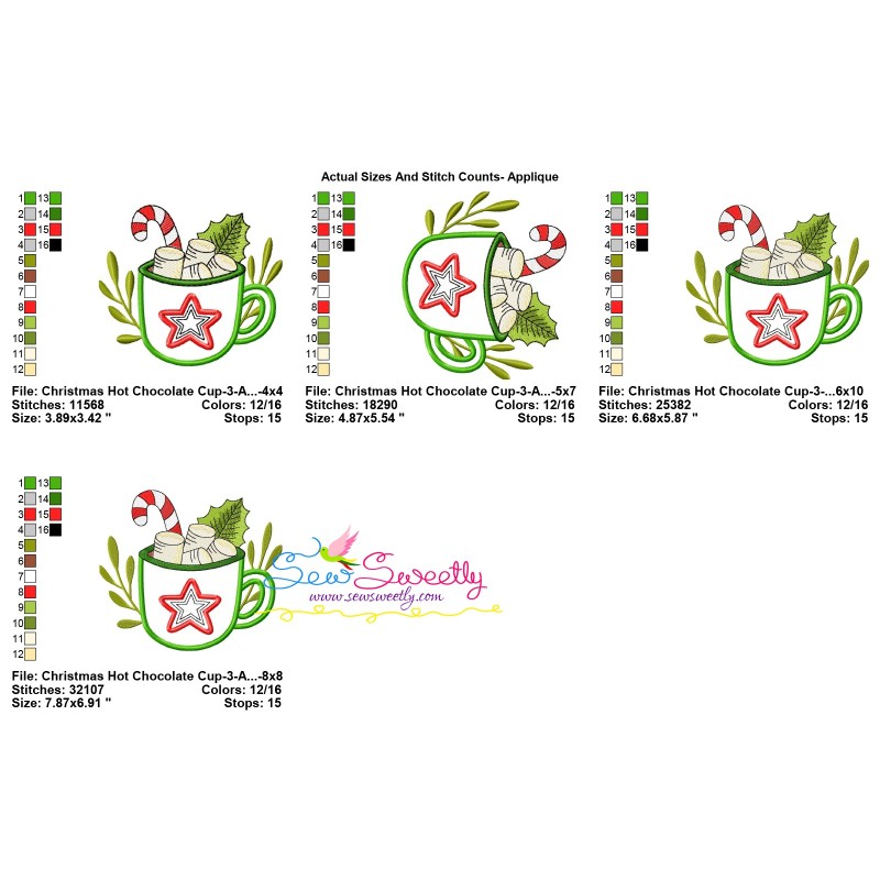 Christmas Hot Chocolate Cup-3 Exclusive Applique Embroidery Design Pattern For Christmas.