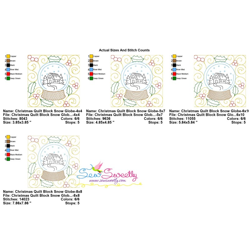 Christmas Quilt Block Snow Globe Exclusive Machine Embroidery Design Pattern For Christmas Quilt Blocks.