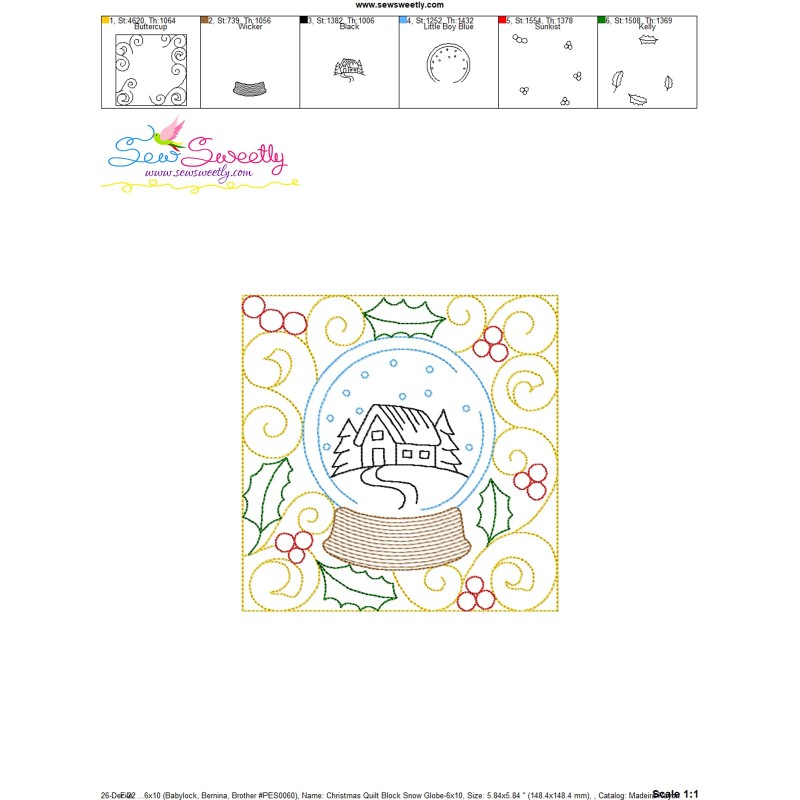 Christmas Quilt Block Snow Globe Embroidery Design Pattern-2