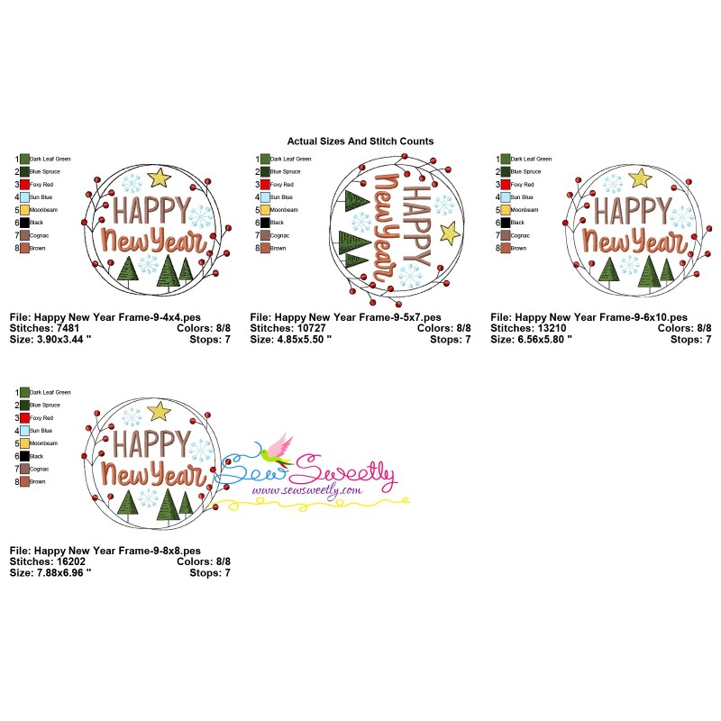 Happy New Year Frame-8 Embroidery Design Pattern-1