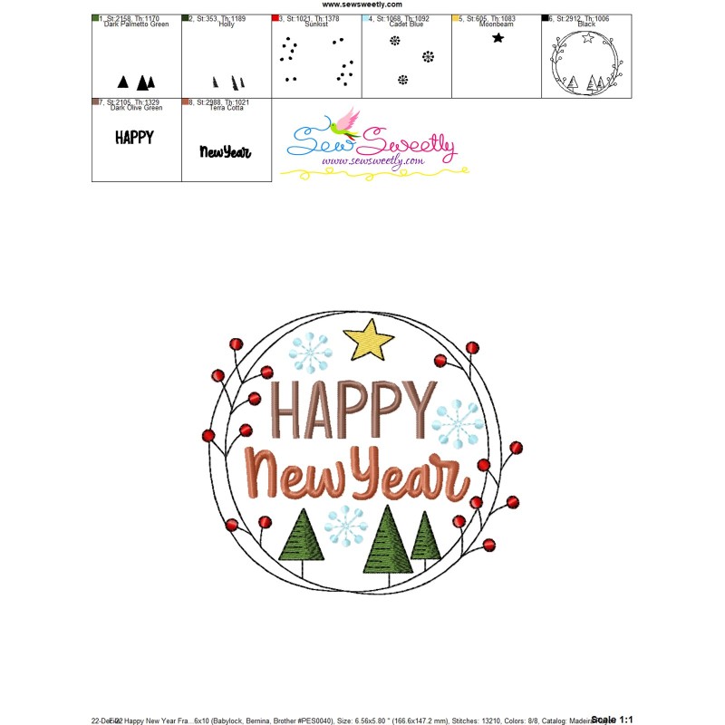 Happy New Year Frame-6 Embroidery Design Pattern-1