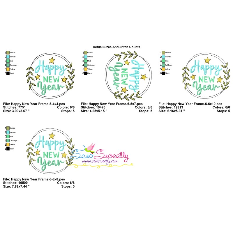 Happy New Year Frames Embroidery Design Bundle