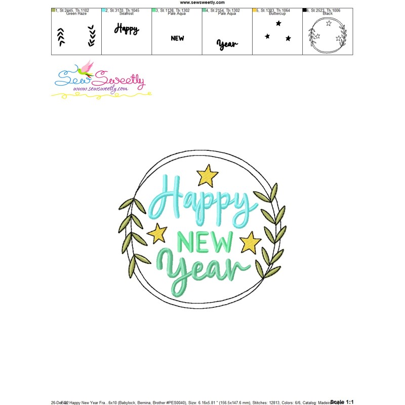 Happy New Year Frame-6 Embroidery Design Pattern-1