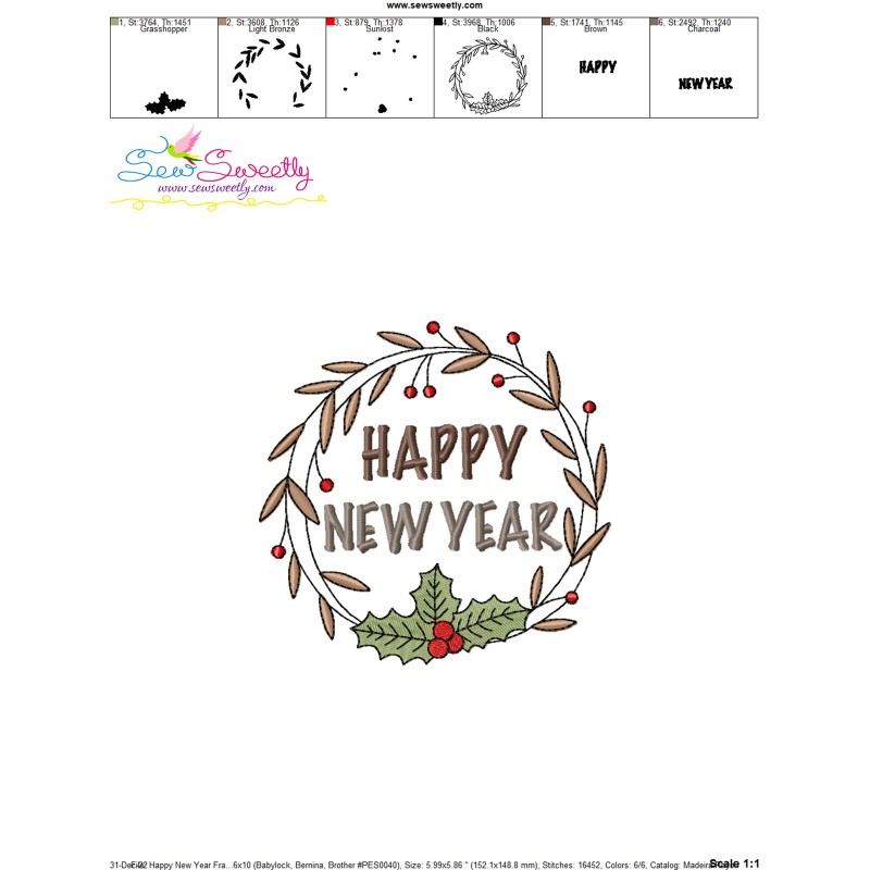 Happy New Year Frame-6 Embroidery Design Pattern-1