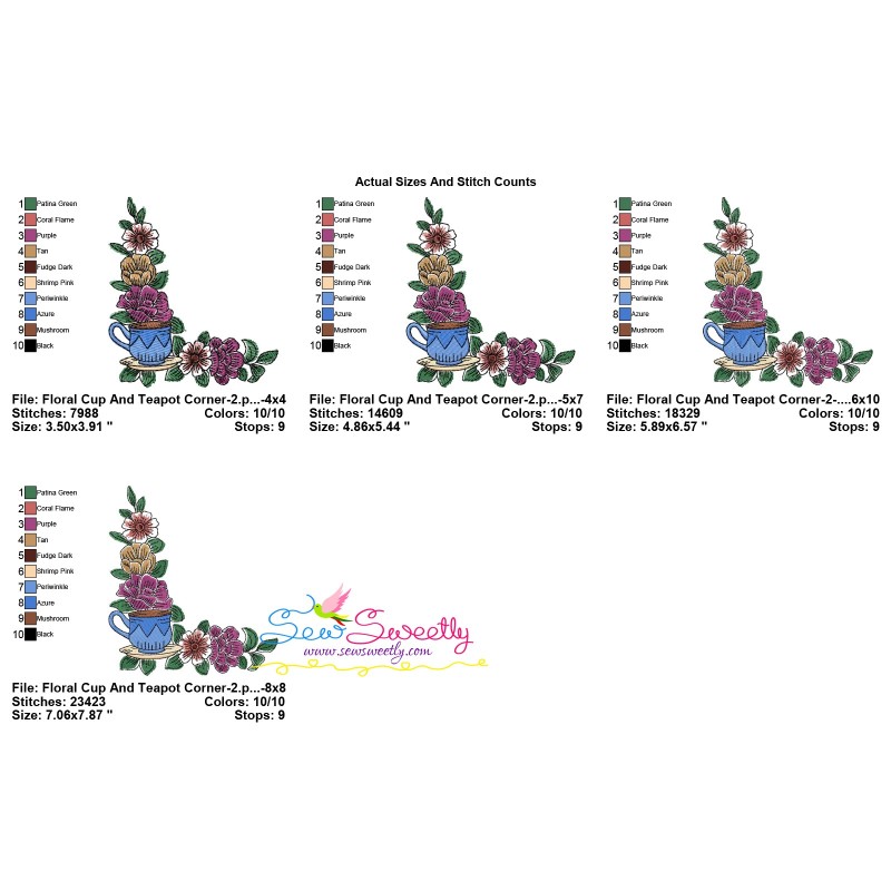 Floral Cup Corner-2 Exclusive Machine Embroidery Design Pattern For Kitchen Projects.