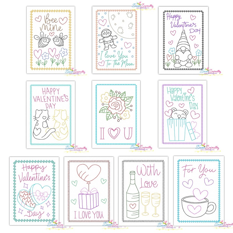 This Embroidery Design Set Includes 10 Beautiful Cardstock Greeting Card Designs For Valentine's Day.