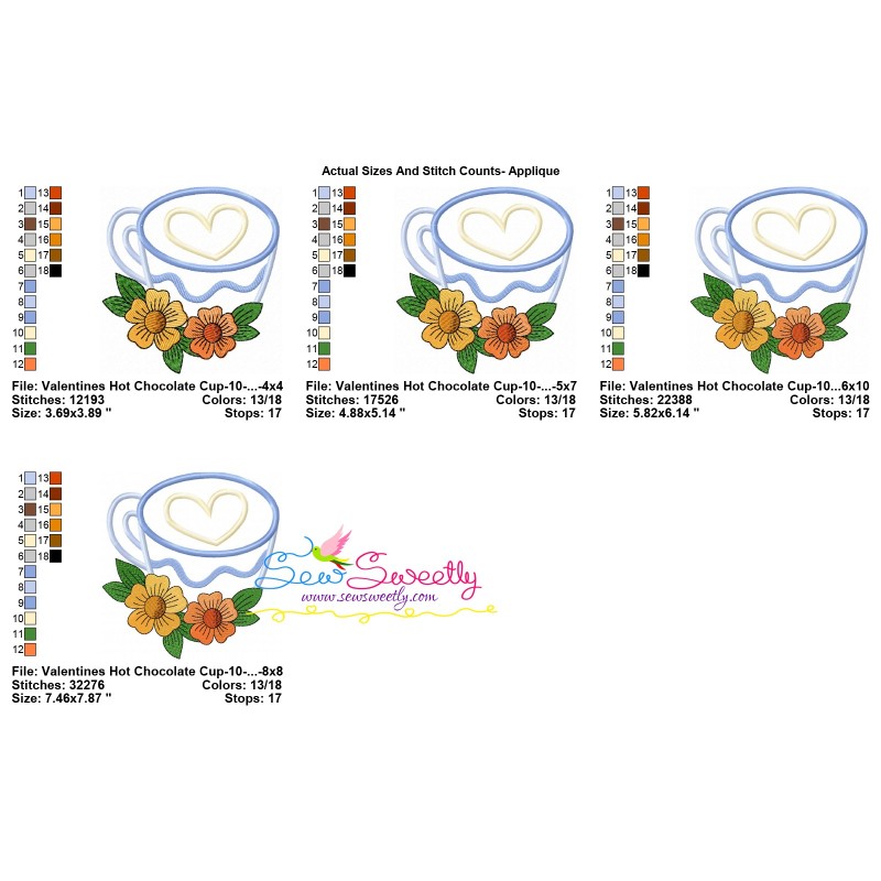 Valentine's Hot Chocolate Cup-10 Exclusive Applique Embroidery Design Pattern.