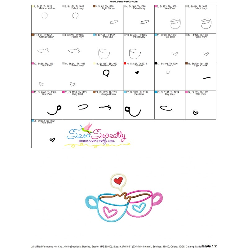 This Applique Design Set Includes 10 Beautiful Valentine's Hot Chocolate Cup Applique Embroidery Designs.