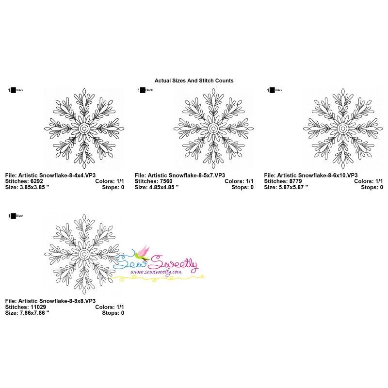 Artistic Snowflake-8 Exclusive Machine Embroidery Design Pattern.