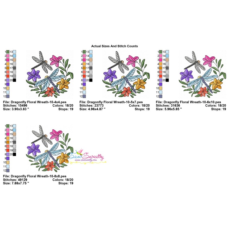 Dragonfly Floral Wreath-10 Machine Embroidery Design Pattern.