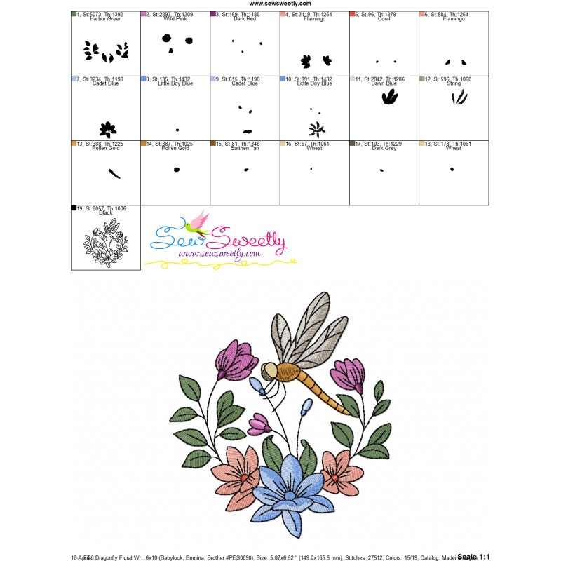 Embroidery Design Pattern | Dragonfly Floral Wreath-9-1
