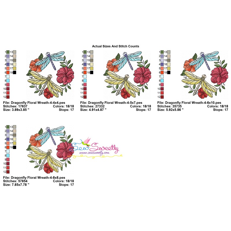 Dragonfly Floral Wreath-4 Machine Embroidery Design Pattern.