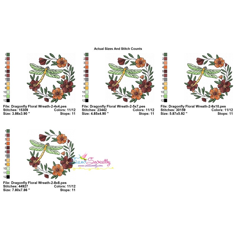 Embroidery Design Pattern | Dragonfly Floral Wreath-2-3
