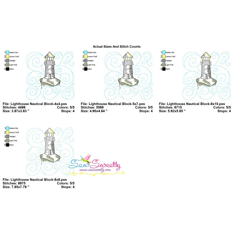 Lighthouse Nautical Quilt Block Machine Embroidery Design Pattern.