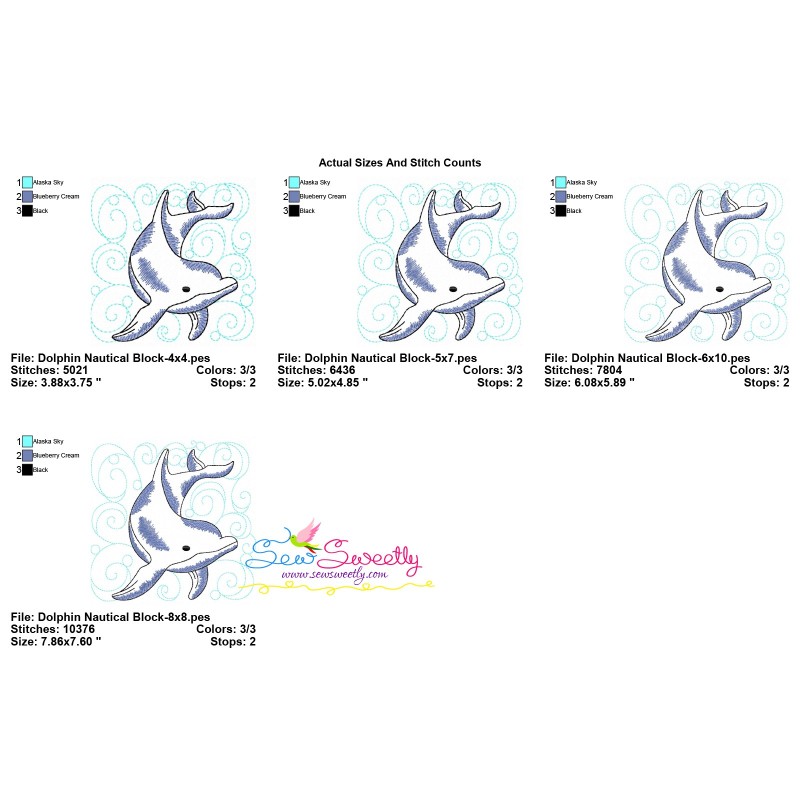 Dolphin Nautical Quilt Block Machine Embroidery Design Pattern.