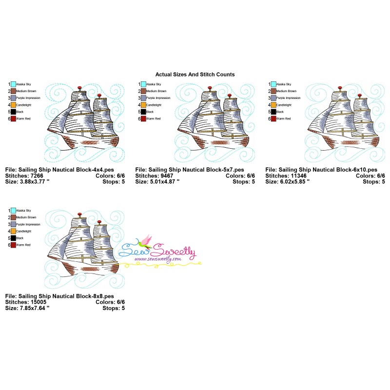 Embroidery Design Pattern - Sailing Ship Nautical Quilt Block-3