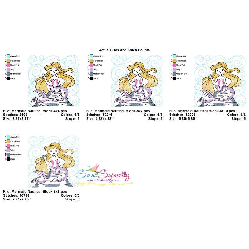 Mermaid Nautical Quilt Block Machine Embroidery Design Pattern.