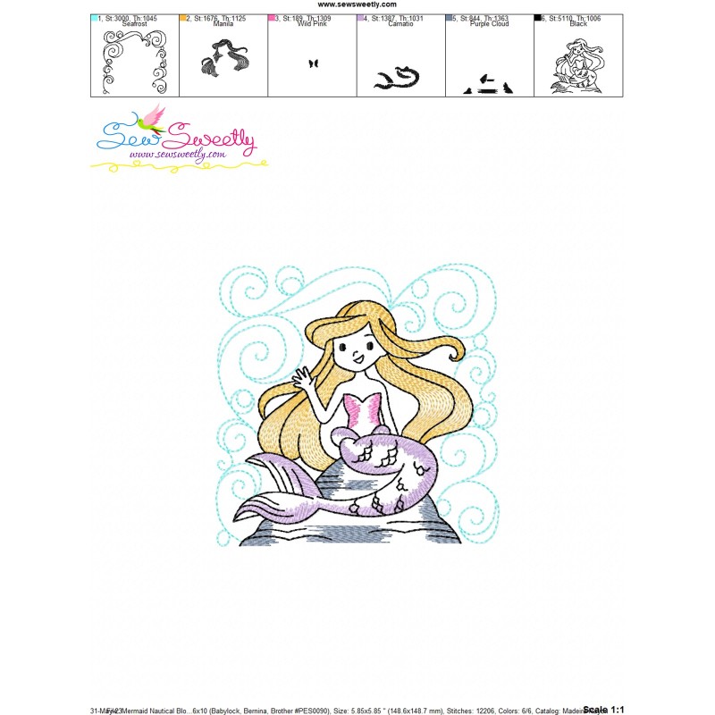 Embroidery Design Pattern | Mermaid Nautical Quilt Block-1