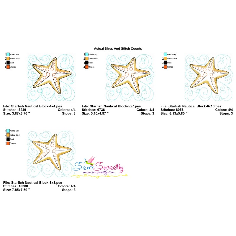 Starfish Nautical Quilt Block Machine Embroidery Design Pattern.