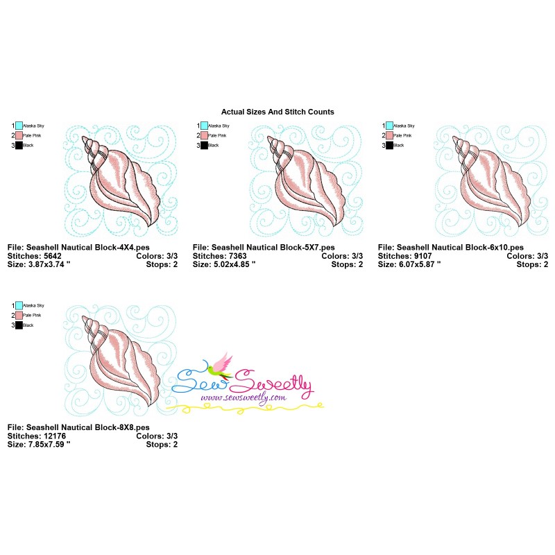 Seashell Nautical Quilt Block Machine Embroidery Design Pattern.
