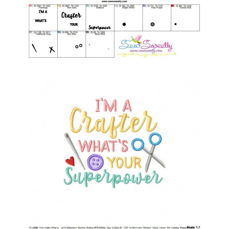 I Am Crafter What Is Your Superpower Machine Embroidery Design Pattern.