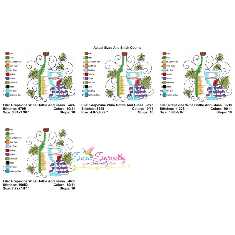 Embroidery Design Pattern - Grapevine Wine Bottle And Glass-2-3