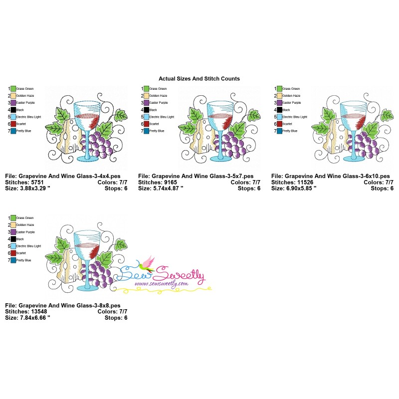 Grapevine And Wine Glass-3 Machine Embroidery Design Pattern.