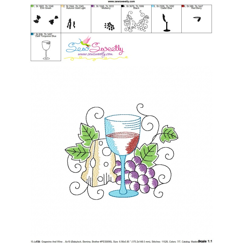 Embroidery Design Pattern - Grapevine Wine Bottle And Glass-2-1