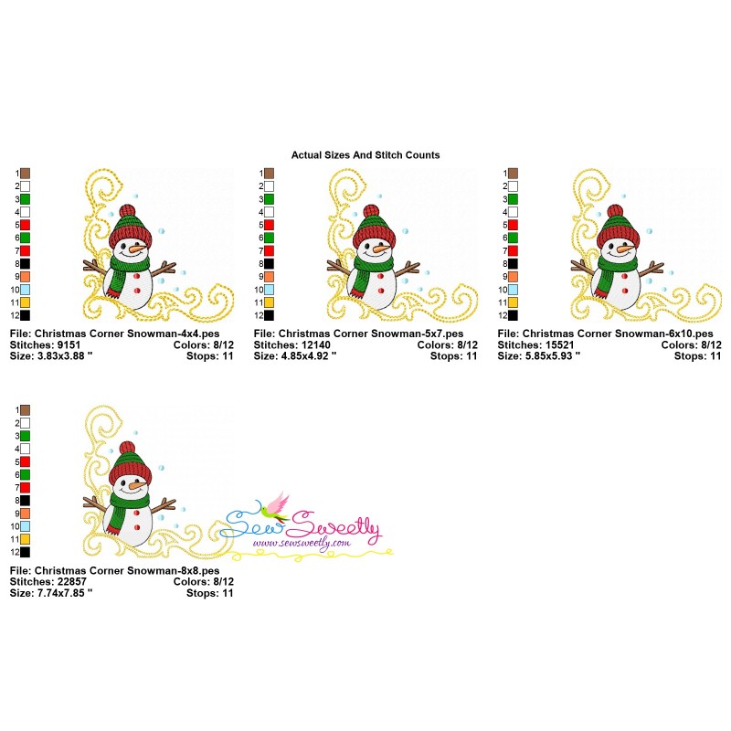 Christmas Corner Snowman Exclusive Machine Embroidery Design Pattern.