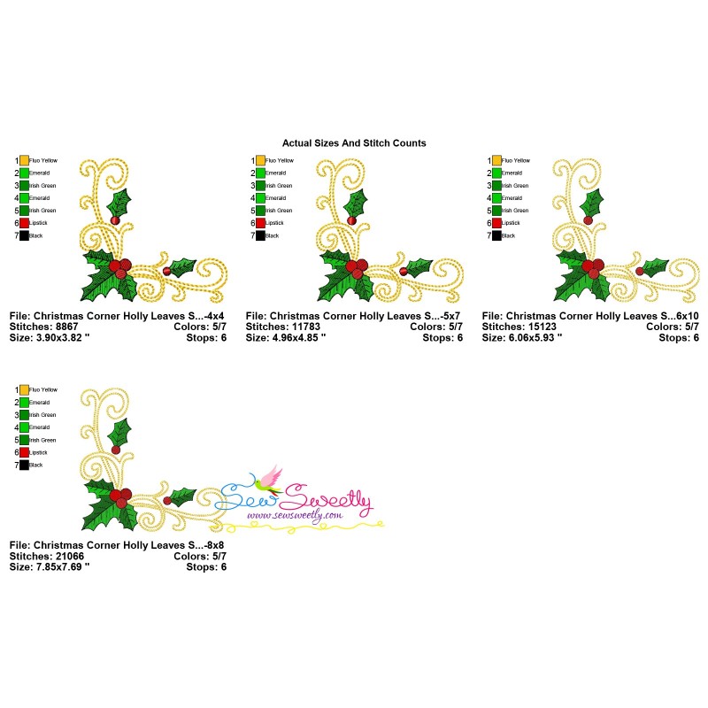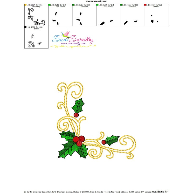 Embroidery Design Pattern - Christmas Corner Holly Leaves Swirls-1-3